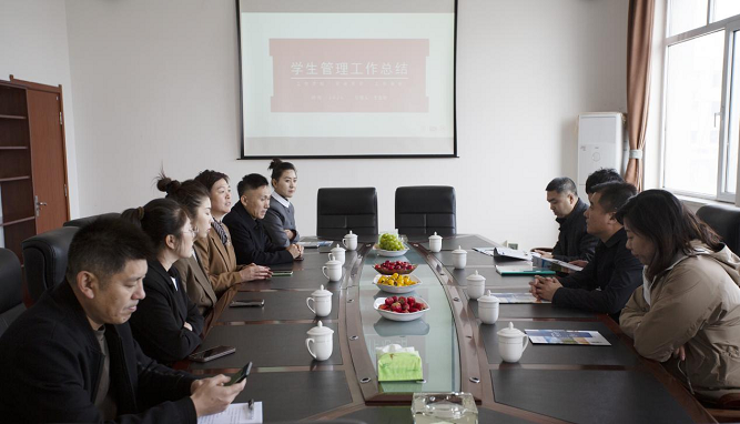 赵局长一行人进入校园,来到学校教学楼会议室召开座谈会。